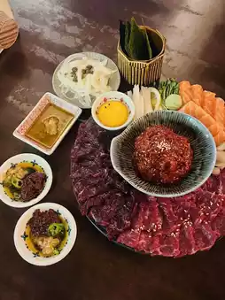 If you can't resist raw beef, salmon, and Japanese sake, then you must go to this izakaya in Gwangalli, Busan, which has a late-night canteen feel - 경성육회관 (Gyeongseong Meat Restaurant). The main dish here is "fresh beef slaughtered that day", and even Korean friends who are experts recommend it. It is the kind of surprise restaurant that you will want to visit again after eating it!