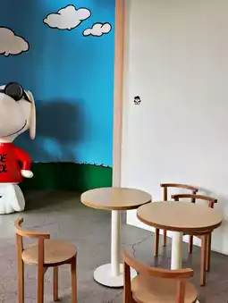As soon as you enter the door, you will be greeted by a huge surfing Snoopy doll. You can't stop taking pictures from the door 📸. The interior design is warm and retro, with high ceilings and large glass windows, allowing you to enjoy the sea view while drinking coffee. You can also encounter small exhibition areas with different themes. It is like entering the world of Snoopy.