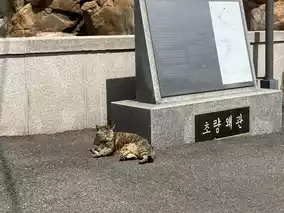 After a five minute escalator ride, I came to the entry of this free park, and discovered…cats? There were perhaps five stray cats I saw. All were friendly yet unobtrusive. After a 15 minute walk, I was at the summit. There is a duty-free shop and tower at the summit.
