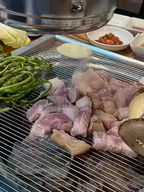 - During the water parsley season, you can enjoy unlimited free refills of Cheongdo water parsley, which was absolutely delightful. The combination of water parsley and samgyeopsal is fantastic, and being able to eat unlimited amounts of this expensive ingredient made me really happy.