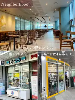 There is a Starbucks and a convenience store in the same building as the hotel.