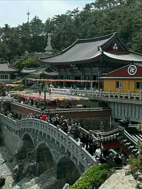 Next stop: Haedong Yonggungsa Temple. This seaside Buddhist temple literally hugs the cliffs above the crashing waves. I went early in the morning—just the sea breeze, temple bells, and a sense of calm I didn’t expect to find in a city. It’s one of Korea’s rare temples built by the ocean, and it’s every bit as spiritual as it is scenic.