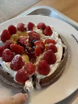 Recommended! Seasonal strawberry waffle (딸기와플) 18,000 won🍓🧇The freshly baked waffle is topped with lots of cream, strawberry jam, and strawberries, so it's a big but crispy waffle!