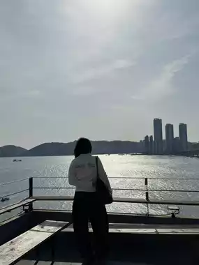 Another very popular cafe in Busan. The cafe has many floors. The gimmick of this shop is that the top floor of the cafe overlooks the sea and the city of Busan. It's very beautiful. Inside, there is a glass corner that is a highlight. The table next to the glass has a very good view. As for the drinks, the taste is good. It's the basis of Korean coffee. It's easy to drink. We ordered dirty and iced Americano, which were okay. If you go to Busan, don't miss it.