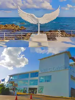 The white building and blue points reminiscent of Santorini give it a neat and sophisticated feel visually.