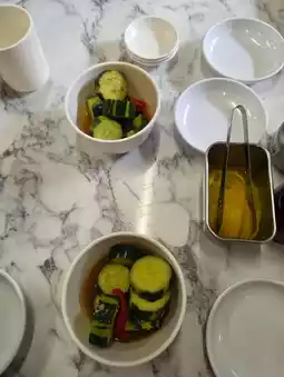 Just a 5-minute walk from Busan Station, there's a popular restaurant known for its dumplings, 'Sinbalwon'. Be prepared for a wait of about 30 minutes. The dishes we ordered were pan-fried dumplings, meat dumplings, and Kung Fu noodles. The Kung Fu noodles are a new menu item, and I highly recommend ordering them—they're absolutely delicious! They pair perfectly with the pan-fried dumplings. The dumplings are filled with juicy meat, and it's clear why this place is so popular.
