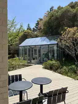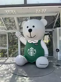 The scenery is amazing, and there are outdoor tables which make it even better. There's also a huge teddy bear balloon 🐻.
