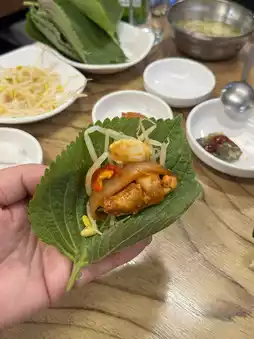 Freshly grilled hagfish has a chewy texture that's absolutely addictive! Wrap it in sesame leaves with ssamjang, bean sprouts, and garlic for a perfectly balanced taste ✨️