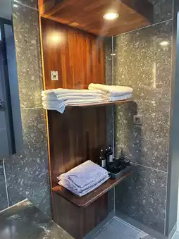 ✔️ The suite was spacious — I had a separate sitting area, a huge bed, and a full-length mirror (yes, selfie-approved).