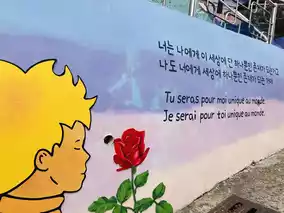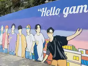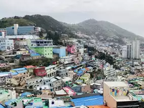 A famous tourist spot in Busan known for its colorful houses and wall art