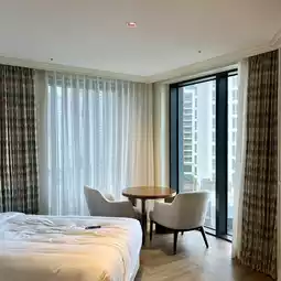 As soon as I arrived at Haeundae, I was greeted by the sight of Grand Josun Busan! Its clean and sophisticated exterior instantly raised my expectations. The lobby was spacious and had a calm ambiance, making the check-in process feel pleasant. Upon entering the room, the first thing that caught my eye was the stunning ocean view through the floor-to-ceiling windows 🌅. Opening the window, I could hear the gentle sound of waves, which was truly healing. The bedding was soft and cozy, so much so that I wanted to lounge around all day 🛏️💤.
