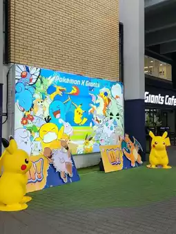 There are photo spots here and there, such as a large Pikachu air balloon due to the current Pokemon collaboration, and they're selling collaboration baseball goods. Hehe. It's perfect for cheering on the baseball team and taking cute pictures before it gets too hot!