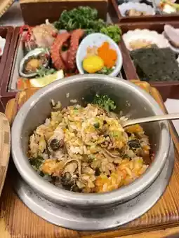 - We went as a pair and ordered the small seafood set and individual pots of rice.