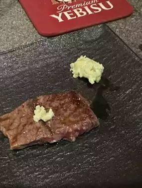 There are various condiments on the side, such as salt and wasabi, that really bring out the flavor of the meat!