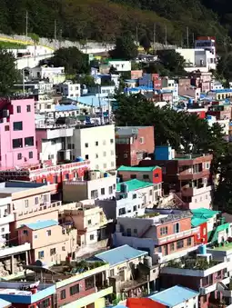 The landscape of colorful houses lined up on the slope like paint is also known as the "Santorini of Korea."