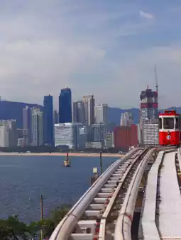 The retro and colorful capsule-shaped monorail that runs on the elevated seaside track in the Haeundae area of Busan is very popular.