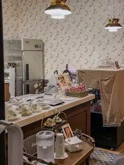 An antique-style cafe with a warm atmosphere, renovated from a traditional Hanok. The space is decorated with charming props and lighting, creating a snug ambiance.