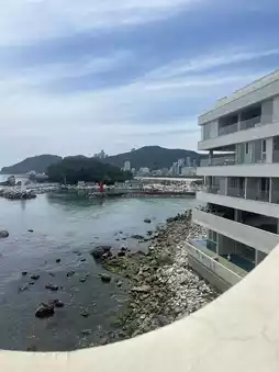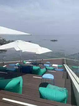 Coralani is a famous ocean-view café in Busan, styled like Santorini with white and blue aesthetics. The building has four floors, including a rooftop terrace that offers breathtaking views of Songjeong Beach.
