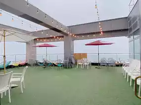 The terrace with an ocean view is particularly charming, but on the day I visited, it was raining heavily, and the fog obscured the view.