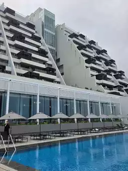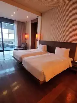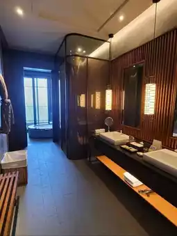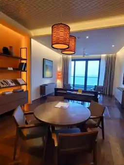 The vibe is super chill and upscale without being too flashy. There’s an infinity pool, a hot spring spa, and this cool little shopping village with cafes, restaurants, and even a bookstore. It’s kind of like its own mini resort town, you barely need to leave the property.