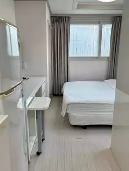 A large refrigerator with freezing function is equipped with two bottles of mineral water, and an electric kettle is also installed. From the room, you can see Busan Tower and enjoy the night view.