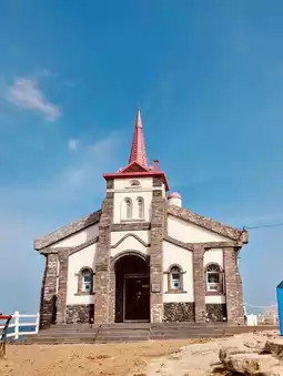 Perched dramatically on a rocky outcrop right by the sea in Gijang-gun, the "cathedral" boasts a charming, somewhat whimsical design that evokes images of a European coastal church. Its stone walls, pointed roof, and small bell tower stand in beautiful contrast against the wild blue ocean, creating a truly idyllic and romantic scene. The sounds of waves crashing nearby complete the immersive coastal atmosphere.