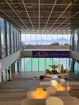 I went there quite often after it opened, but it's been a really long time since I went back to Piark! As expected, the scale is unprecedented. And all the scenery captured with the Yeongdo sea view was so pretty that it was perfect for a healing date course on Friday night. There is a collaboration table with the Aladdin event now, and there is a photo zone, so it's more fun and pretty. There is also a Crayon Shin-chan event, so be sure to go.
