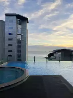The pool at Baymond is particularly impressive, offering stunning views whether during the day, at sunset, or at night. It rivals those of nearby 5-star hotels.