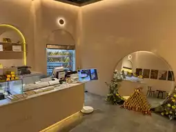 In particular, the unique desserts, such as gold bar-shaped cakes, are displayed in an actual vault space, drawing attention.