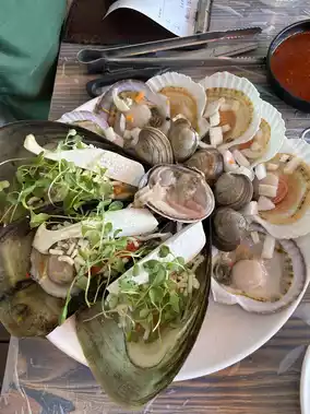 A shop by the sea, cool breeze, 2 floors  Fresh seafood taste, warm service, friendly staff and come to cook at the table. Plus, every table has a sea view. Seafood meal with a seaside atmosphere, I must say that you should not miss it. If you don't try it, it's like you haven't been to Busan.