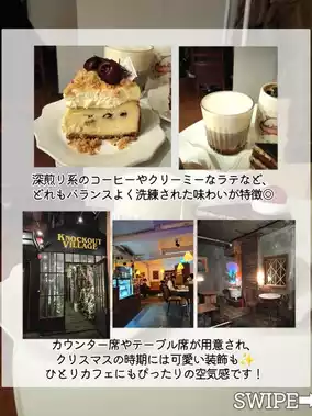 Enjoy a quiet cup of coffee in a gallery-like space with a black theme.