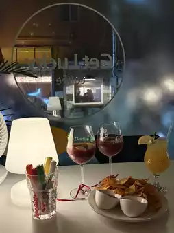 Each table has a pen so you can draw on the glass. It's great for drinking alone, with friends, or on a date.