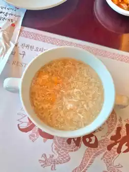 ✔️The course included crab porridge, which was delicious. I personally thought it tasted like pufferfish.