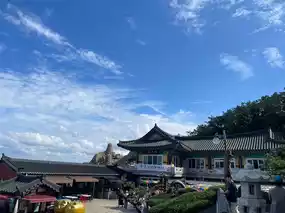 After praying, taking photos, and enjoying the beautiful scenery, you can stroll around and explore the shops in front of the temple. There are amulets, souvenirs, and plenty of food stalls. Don't miss the freshly squeezed orange juice and the whole-grain hotteok. A uniquely delicious experience (really delicious, no arguments!)
