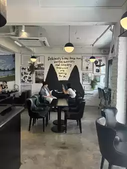 The interior is stylish with a black theme. There are about 10 two-person seats. It's only 212 meters from Haeundae Station, and there are plenty of other shops nearby, making it a fun area.⛱️