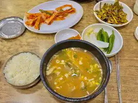 End the day with a hearty meal of Busan's signature dish, pork soup 😋🍲. Warm soup and generous portions of meat will wash away any travel fatigue and truly immerse you in Busan's local atmosphere. 🥢💖
