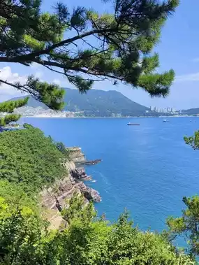 Afterward, take a hike along the coastal trail in Amnam Park. The path occasionally opens up to reveal stunning sea views through the trees. However, the scorching heat made the hike quite challenging, leaving you drenched in sweat. Unable to reach the endpoint observation deck, you decide to return to the cable car station and descend the mountain.
