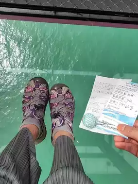 Next, visit the Songdo Dragon Palace Skywalk (additional entrance fee ₩1000, about NT$22). The short loop is enclosed for safety, which somewhat diminishes the aesthetic appeal compared to the view from afar.