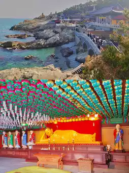 Next, head to Haedong Yonggungsa Temple, where breathtaking coastal views await. Built right by the sea, the sound of waves accompanies your walk, creating a truly healing experience. Legend has it that wishes made here come true, making it a popular spot for visitors seeking blessings 🙏.