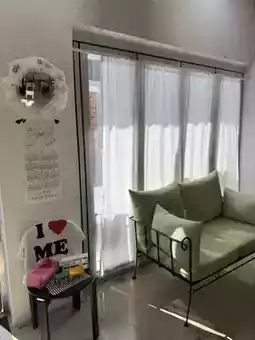 The interior is predominantly white, adorned with stylish decorations, creating a cute and cozy atmosphere. Each table and chair has a unique design, allowing customers to enjoy a different vibe depending on where they sit.