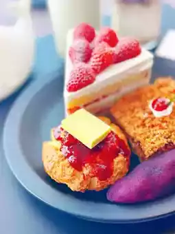 We tried the Orange Cream Latte — super refreshing with a citrusy twist — and the strawberry cake, which was as pretty as it was delicious. The sweet potato bread was soft, subtly sweet, and comforting — a nice surprise!