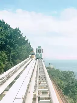The Busan Haeundae Capsule Train is a highly recommended experience at Haeundae Blueline Park. The rainbow train, operating on tracks approximately 7 to 10 meters high, allows passengers to slowly travel from Haeundae Mipo Station to Cheongsapo Station in individual, colorful carriages, offering unobstructed ocean views. The approximately 2-kilometer journey takes about 30 minutes one way.
