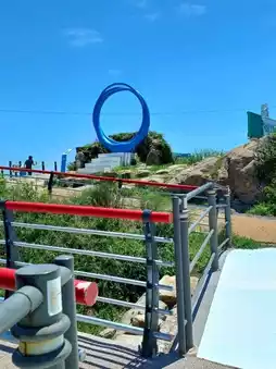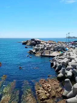 The sight of the quaint red-roofed buildings nestled against the waves and rocks gave me a sense of "time standing still." As I leisurely strolled along the promenade, the sea breeze and the sound of the waves lingering in my ears was truly soothing. This is the Jukseong Cathedral, also known as the Jukseong Dream Set, a drama set. Originally built for the filming of the drama "Dream," it now serves as a place to capture not only the traces of filming but also the artistic sensibilities of both the filming scene and the traveler's imagination. The photo zone in front of the building, in particular, feels like a postcard scene, and is so popular that there's always a line to take a picture. Paintings and images depicting scenes from the drama and film are displayed on the cathedral walls and tetrapods, adding to the visual appeal and creating a unique atmosphere. The contrast between the crimson sky, the cathedral roof, and the sea at sunset is particularly beautiful, so I highly recommend visiting during sunset.
