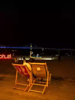• End the day with the lights of Gwangan Bridge and a beach busker.
