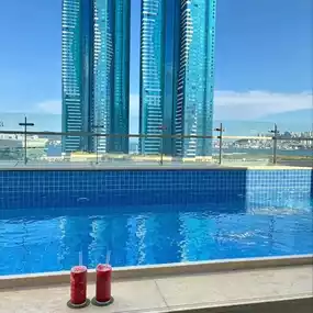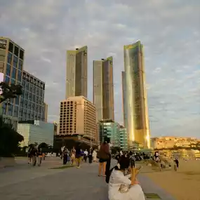 The weather was nice, and Haeundae Beach had a romantic atmosphere at sunset.