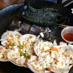 When in Busan, indulging in seafood is a must, and grilled shellfish is something you definitely shouldn't miss. Fresh scallops topped with cheese, grilled until bubbly, then flipped and cooked to perfection—absolutely delicious! 😍