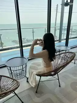 I spent a relaxing time chatting with friends while looking out at the ocean. 🏝️