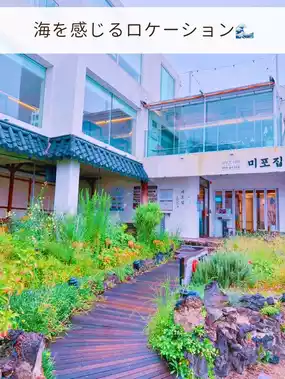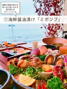 It comes with 12 small side dishes, so you'll be full just by eating it. 😅The restaurant is located by the sea, and the atmosphere is wonderful. ✨
