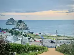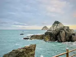 After enjoying the view, I stopped at a nearby observation deck. There were wooden chairs where I could sit and quietly gaze at the sea for a while. The atmosphere wasn't as bustling as a city beach, but it felt more peaceful and natural. The sound of the waves, the wind, and the smell of the sea truly gave me a sense of relaxation.