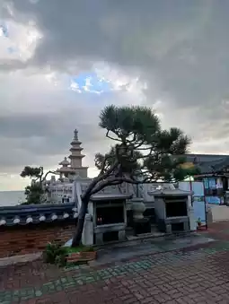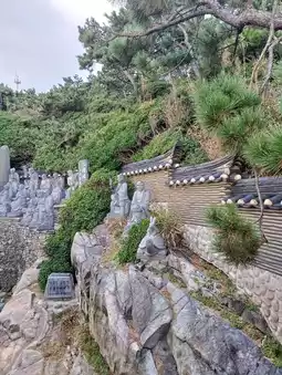 Is there any other place that fits the description of 'a temple by the sea' as well as this? Haedong Yonggungsa Temple is perched on the blue coastal cliffs of Gijang, Busan. As you enter the temple, the first thing that catches your eye is the vast expanse of the sea and the towering statue of Buddha above it. 🌅 The sound of waves mingling with Buddhist chants creates a unique sense of peace. Beneath the bridge, the sea water gently ripples, and the cool breeze brushes against your face. As you walk, the view is so stunning that it feels like you're walking on the sea. With numerous photo spots scattered around, it's a great place for taking pictures, making it popular among families and couples alike. After exploring the temple, you can stop by a small souvenir shop on your way out to purchase lucky charms. Experience a day filled with the mystical harmony of the sea and the temple at Haedong Yonggungsa Temple! 🌺